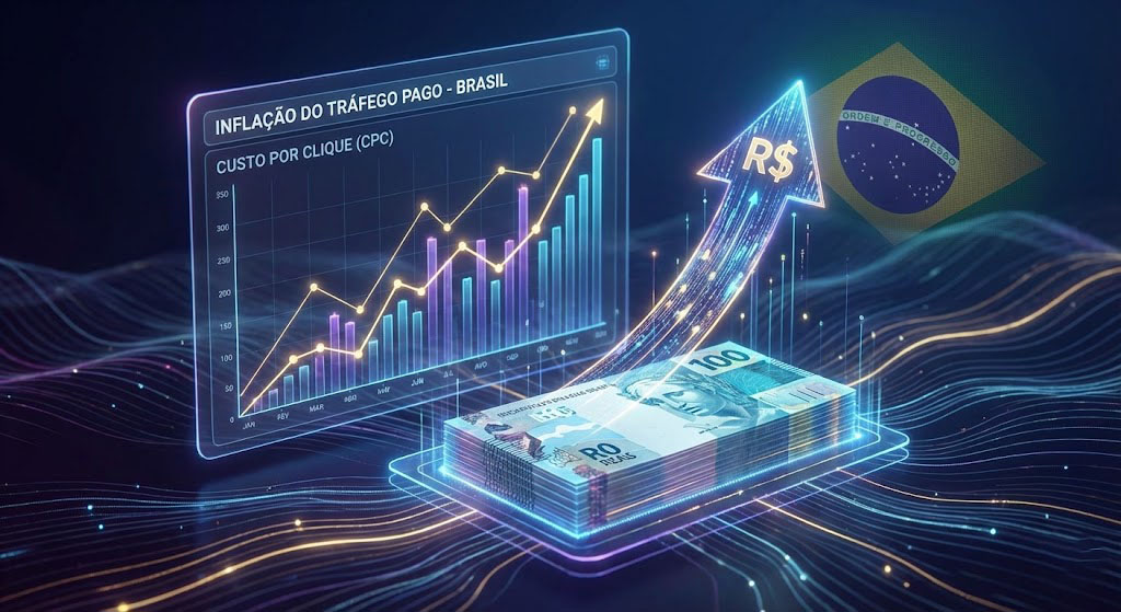 Para ilustrar o impacto: se em 2020 uma empresa gastava R$ 1.000 por mês em tráfego pago e conseguia 500 cliques (CPC de R$ 2,00), hoje o mesmo investimento geraria aproximadamente 350 cliques (CPC de R$ 2,86). São 30% menos oportunidades de conversão pelo mesmo valor.