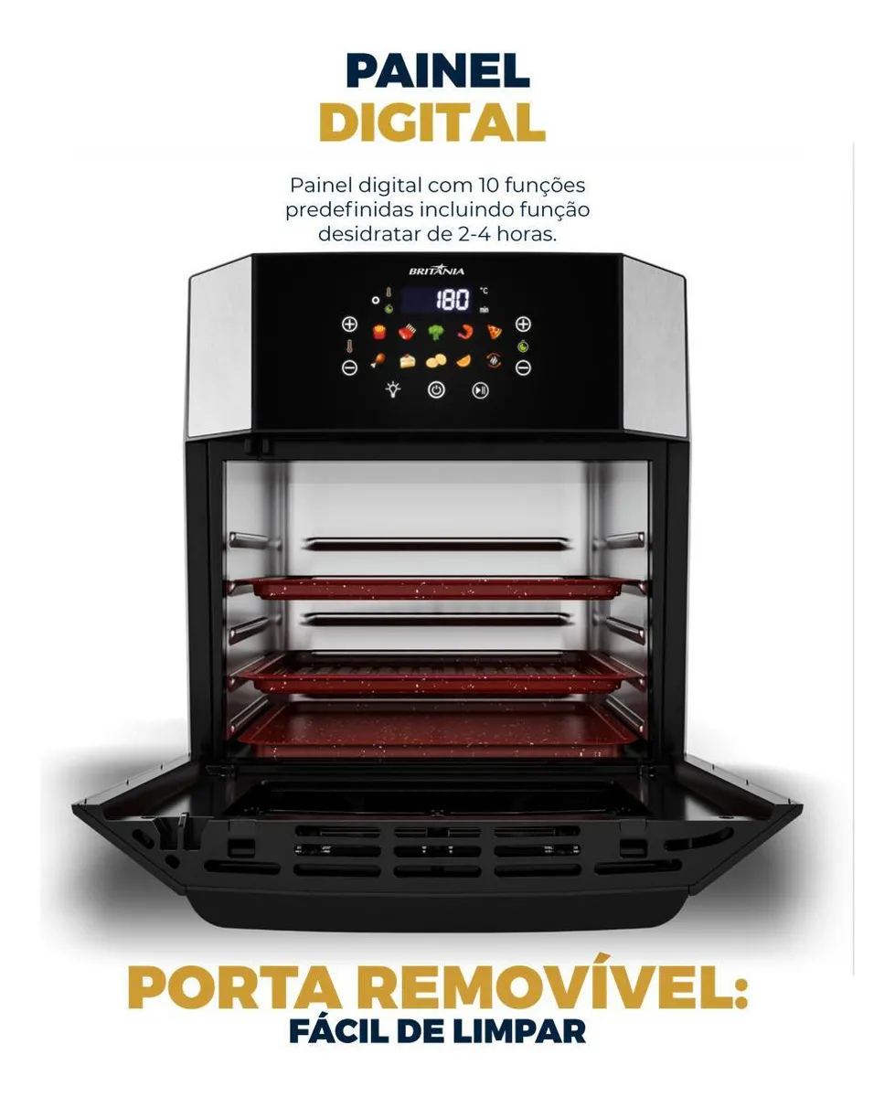 A Air Fryer Oven Britânia 16L é atualmente uma das melhores opções custo-benefício do mercado, com funções completas, design moderno, espaço de sobra e praticidade total.