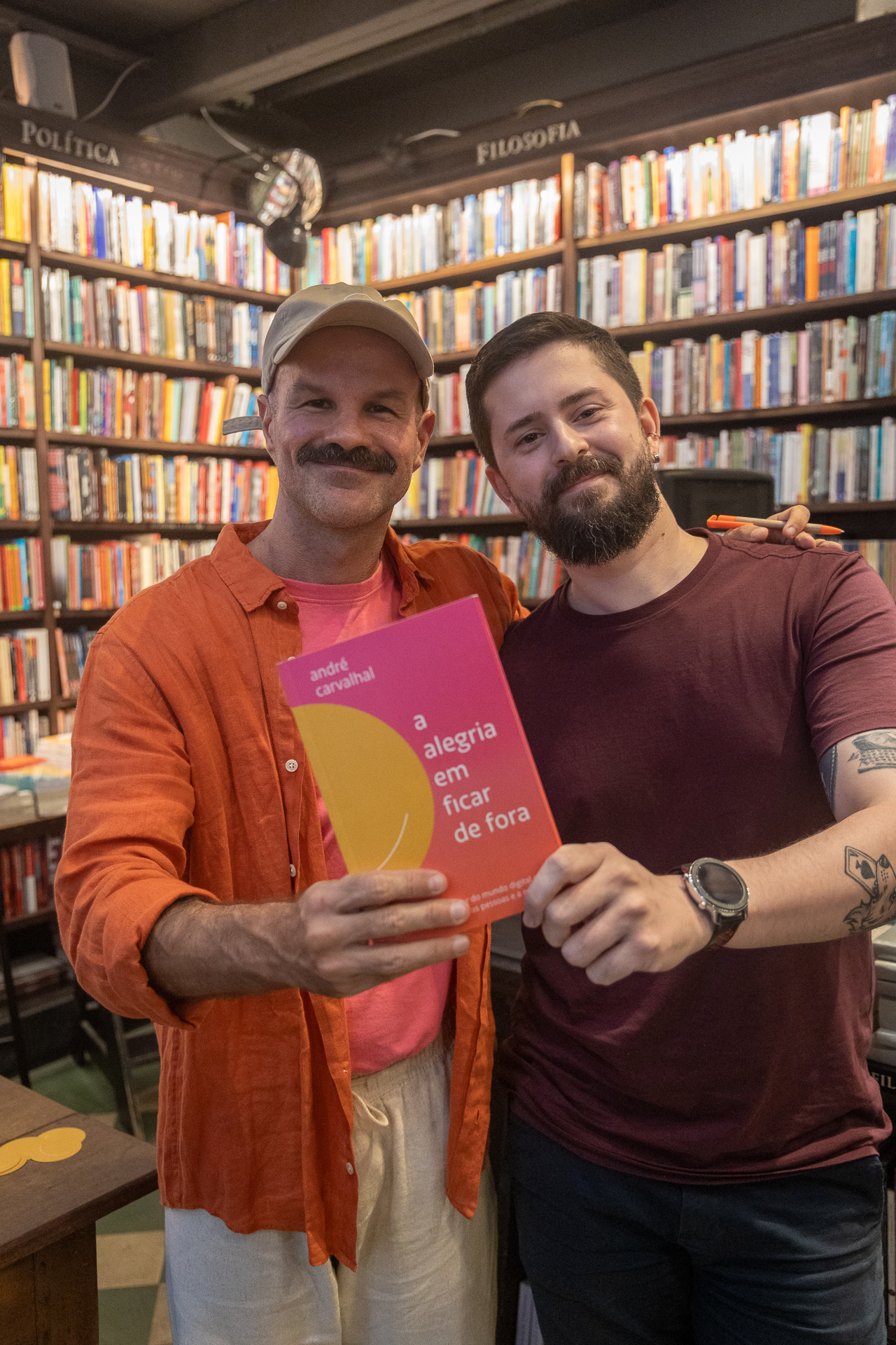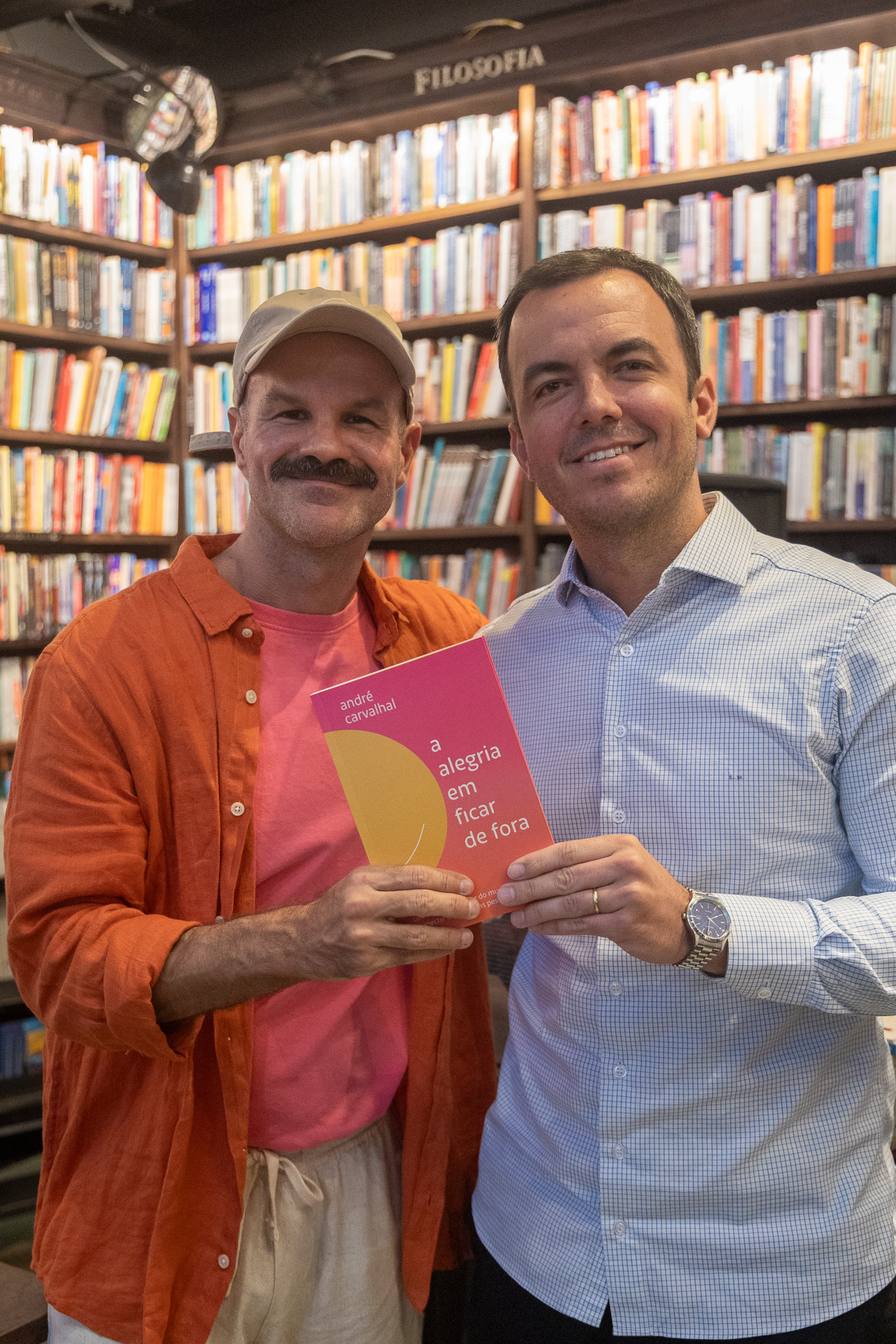 O autor de best-sellers, finalista do Prêmio Jabuti 2019 e especialista em comportamento e sustentabilidade, André Carvalhal, recebeu convidados na última quinta-feira (16), na Livraria da Travessa de Ipanema, para o lançamento de seu novo livro “A alegria em ficar de fora”. Além do lançamento, o evento contou com uma conversa sobre equilíbrio, criatividade e autocuidado, com a participação do autor e da comunicadora de bem-estar e sustentabilidade Ciça Campos. Estiveram presentes convidadas especiais como Lilian Farrish, Carol Yukie (fundadora do projeto Pinta e Brinda) e a escritora e artista Fe Cortez.