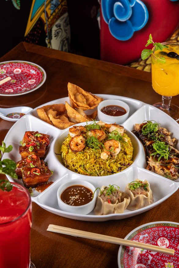 Na Degustação de Ano Novo será servido 2 siu mays com molho hoisin frutado, 4 wontons com molho de tamarindo, frango chijaukay com molho chinês, arroz chaufa de camarões e porco sechuan (R$165 – fotos Tomás Rangel).