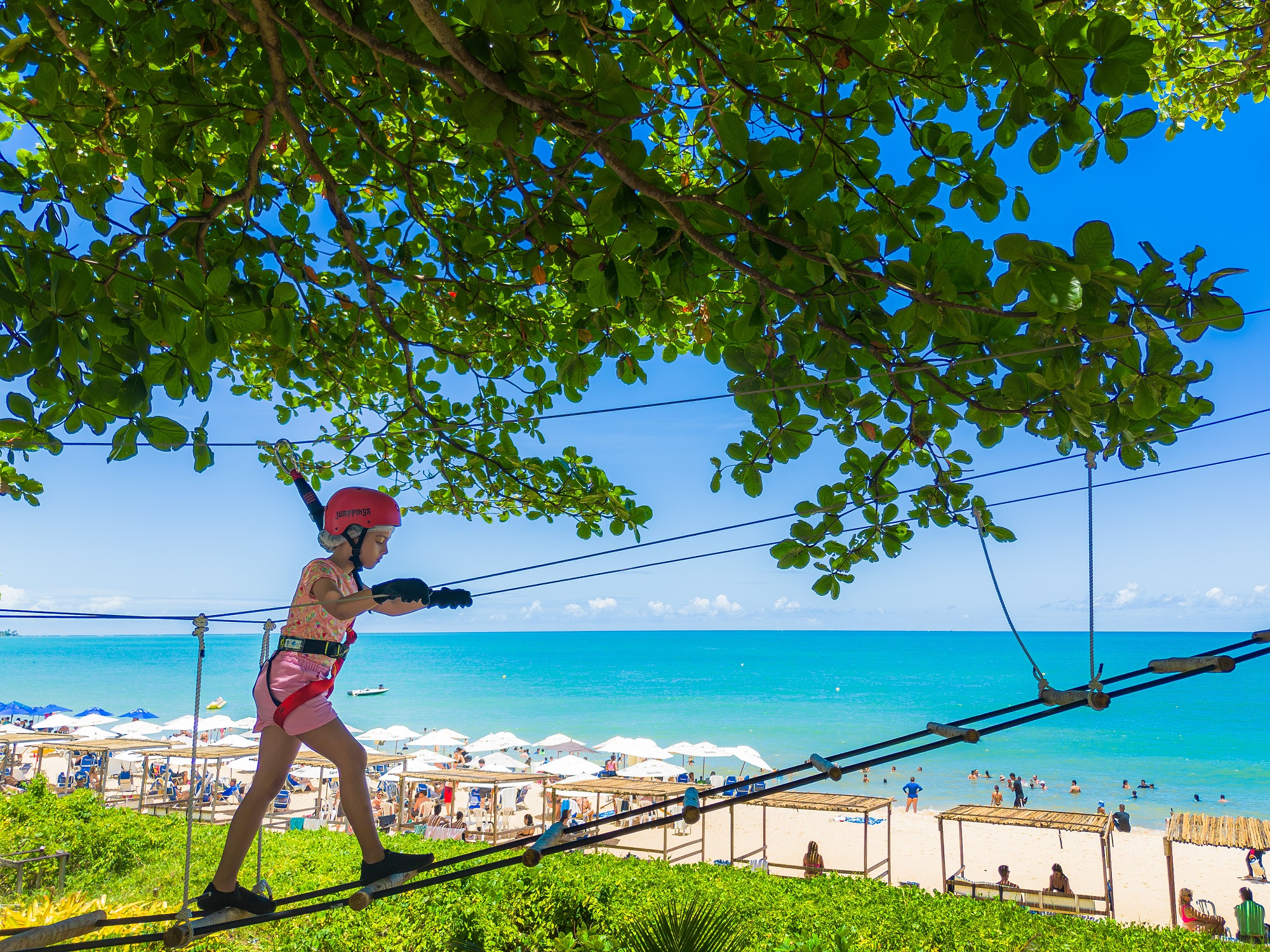 Para Marco Sagui, consultor de atividades de turismo de aventura e responsável pela implementação da atração, a trilha de arvorismo do resort é uma atividade que integra crianças e adolescentes à natureza. “Ao mesmo tempo em que estão brincando entre as copas das árvores, elas veem o mar. Esse é um diferencial incrível”, diz.