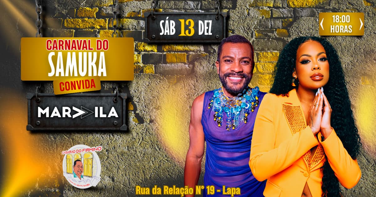 A boa do fim de semana: Neste sábado (13), acontece a 2ª Edição do Carnaval do Samuka no Casarão do Firmino com show da Cantora Marvvila.