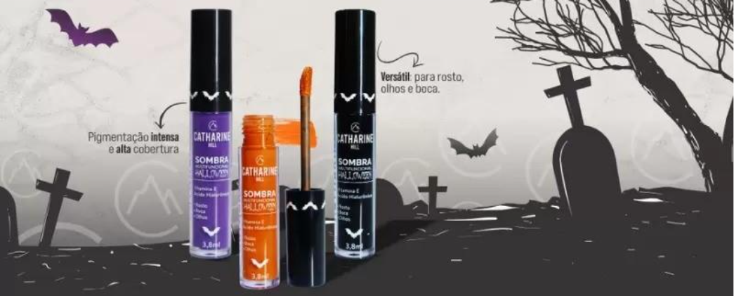 A Catharine Hill apresenta sua edição limitada de Halloween com o lançamento das Sombras Líquidas Multifuncionais. Disponíveis em três cores, Salem (preto), Witch (roxo) e Jack (laranja), os produtos foram desenvolvidos para uso versátil, permitindo diferentes propostas de maquiagem, desde produções sociais até artísticas.