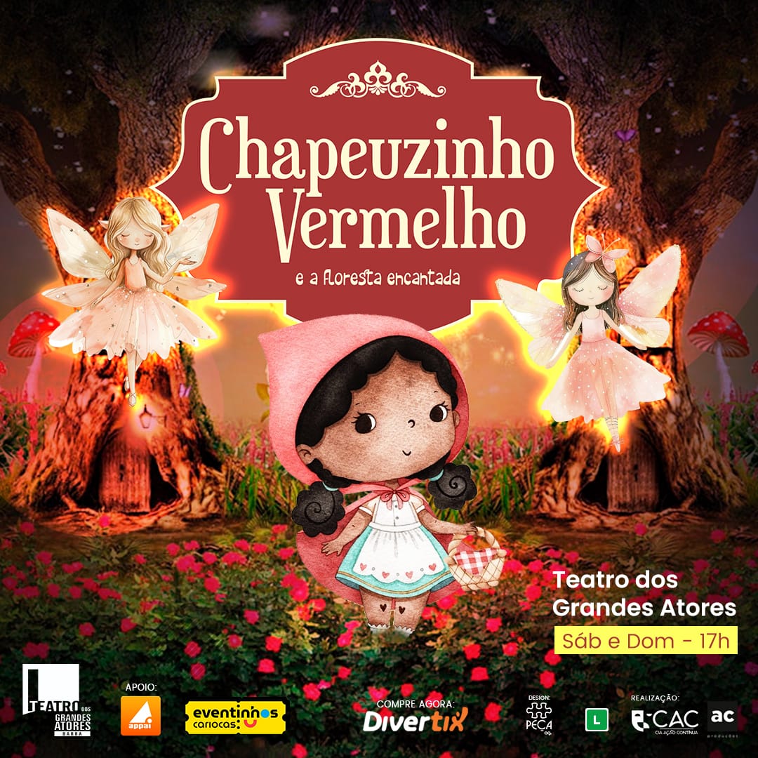 O que acontece a seguir? Bem, o resto da história todos conhecem… ou pensam que conhecem! Venha descobrir o final de Chapeuzinho Vermelho e a floresta encantada. Com trilha original de Demetrius Fomes, texto e direção de Marcelo Lavinas e elenco de atores da Cia. Ação Contínua.
