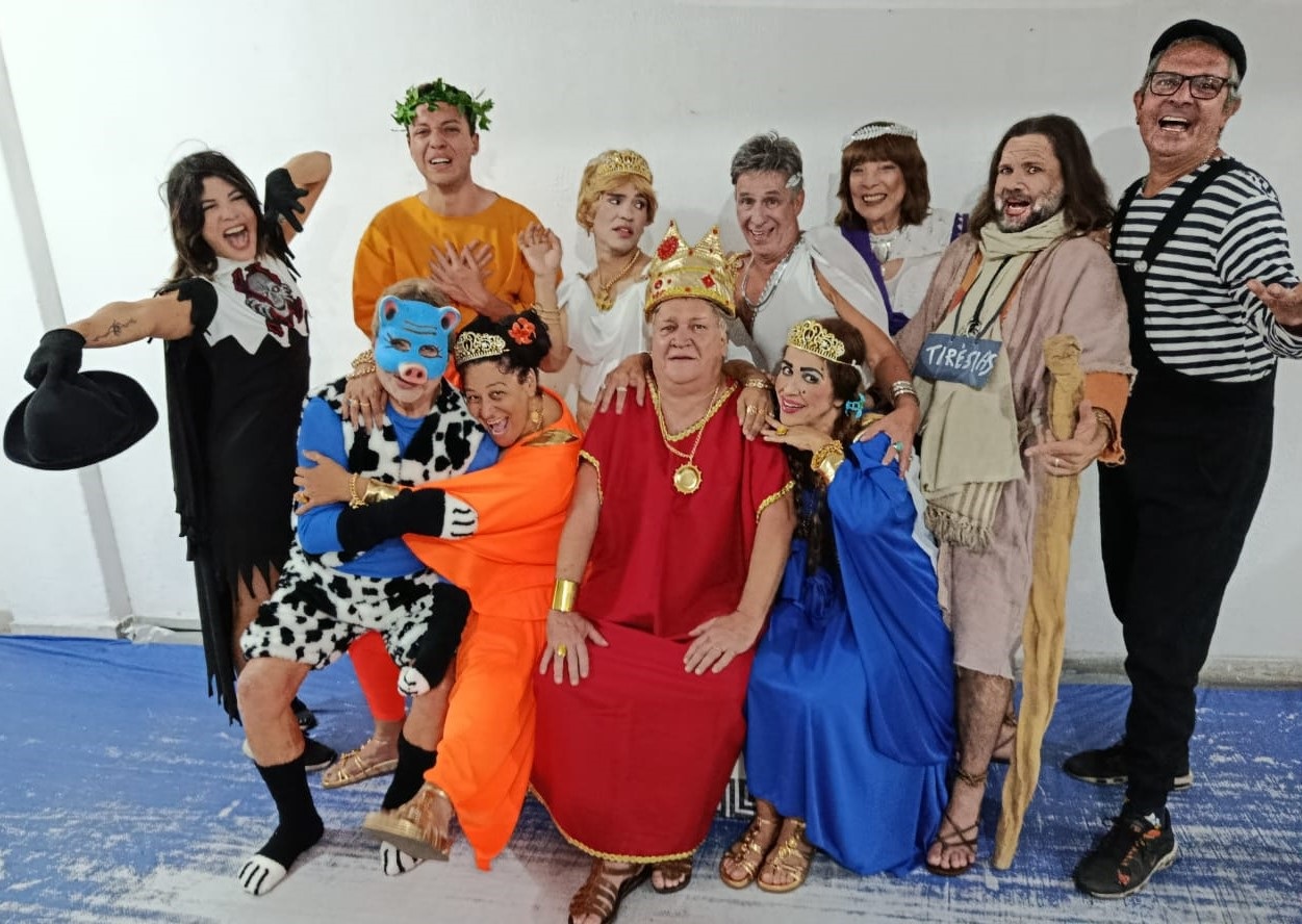 Misturando cultura popular e referências contemporâneas, a peça enfoca a filosofia, a beleza, a busca do amor e o abuso do poder, sempre com sarcasmo e participação do público. O resultado é um espetáculo politicamente incorreto, que resgata a tradição do humor popular brasileiro. É um convite ao riso libertador, exagerado e sem cerimônia, provocado pelo amor, a beleza, a feiura, o prazer e as eternas trapalhadas dos imortais.