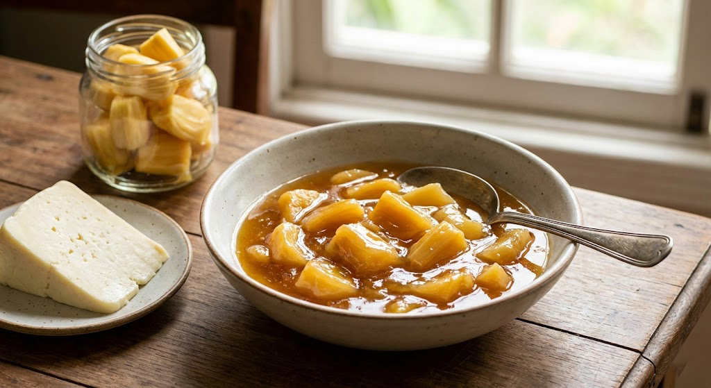 Se você procura uma sobremesa prática, econômica e com aquele gostinho nostálgico de “casa de vó”, acabou de encontrar. Nesta receita, você vai aprender o passo a passo de um Doce de Jaca Mole que desmancha na boca e não exige horas na cozinha. Envolvido em uma calda de caramelo dourada e sem segredos, esse doce é a pedida ideal para servir bem geladinho ou para compor a combinação clássica com uma fatia fresca de queijo minas. Prepare-se para aproveitar o melhor da fruta e surpreender a todos com simplicidade!