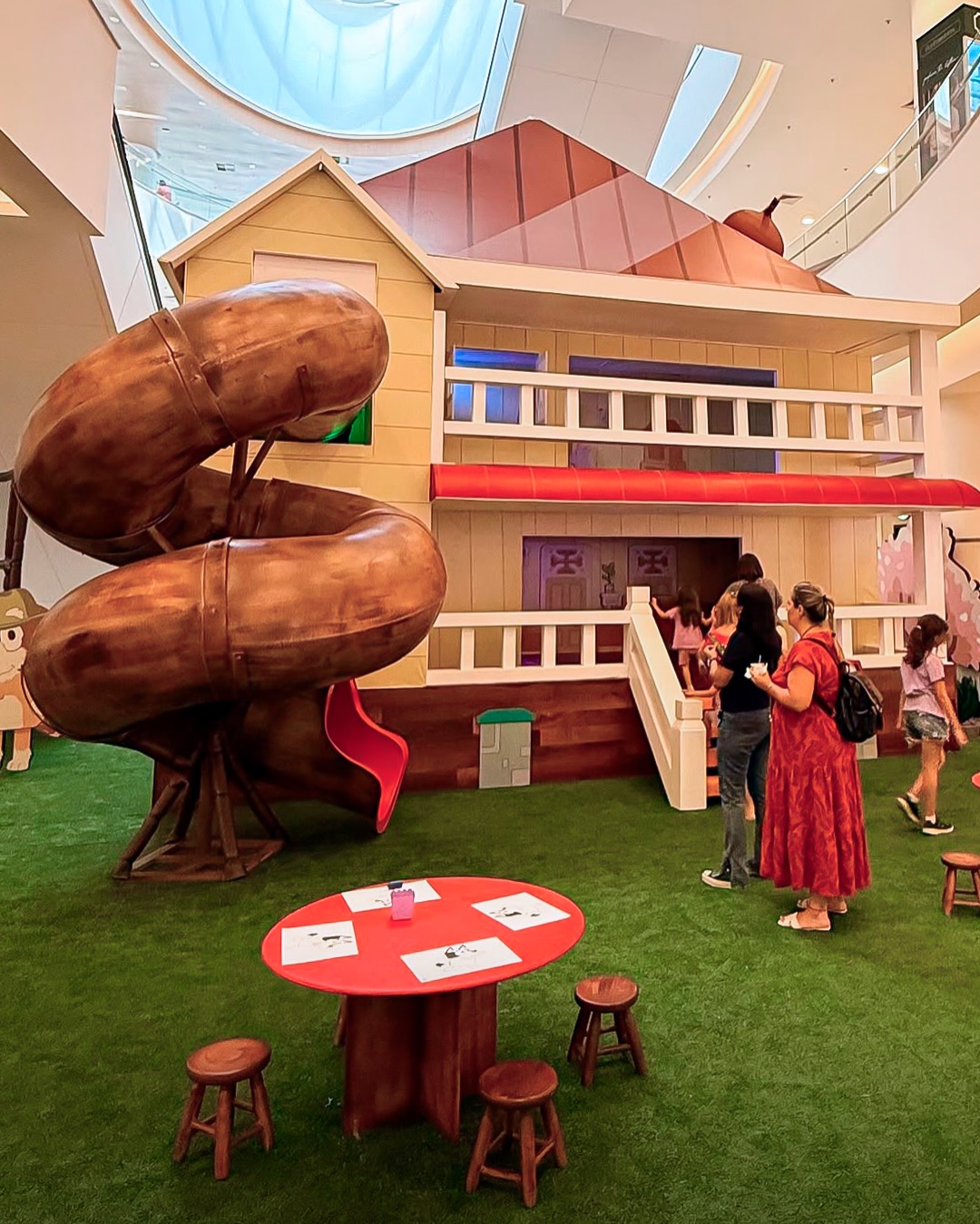 O fenômeno infantil ganha uma arena interativa com foco em movimentos e brincadeiras físicas, assinada pela 2a1 Cenografia. Aos fins de semana, há encontros gratuitos com as personagens.