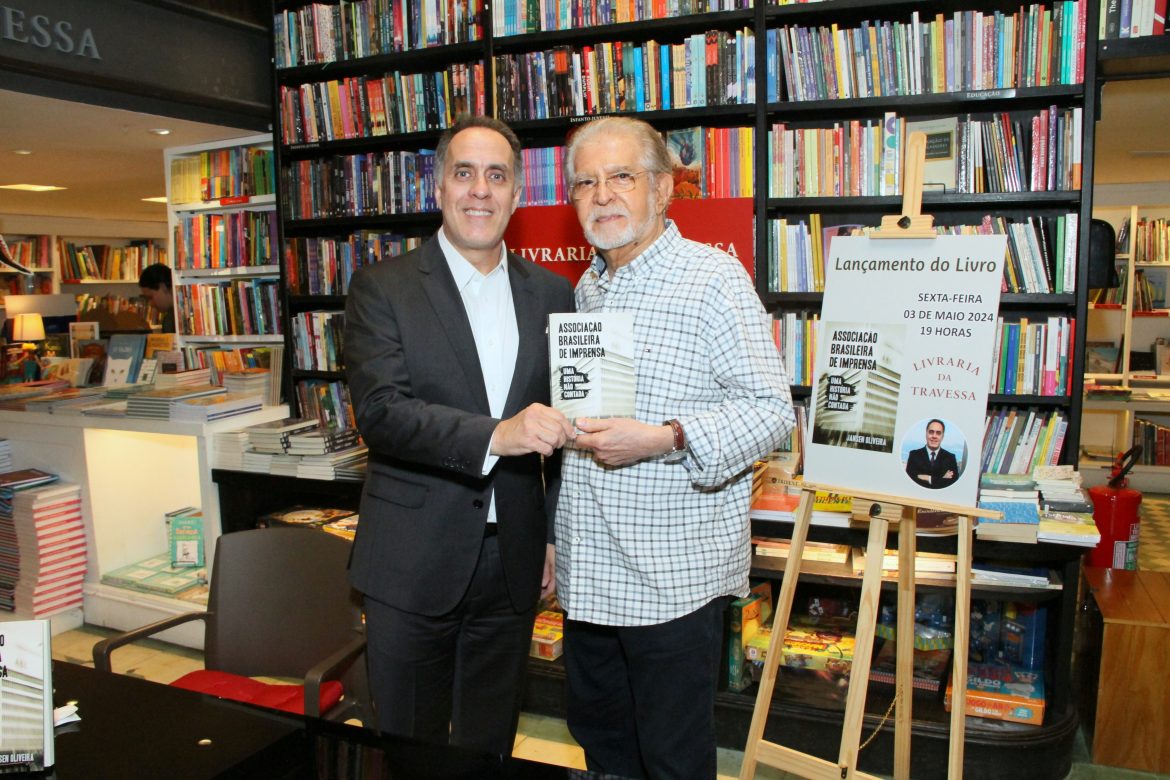 O grande e renomado jornalista e apresentador, Domingos Meirelles, foi prestigiar o lançamento do livro ‘Associação Brasileira de Imprensa – uma história não contada’, na livraria Travessa do Leblon, na noite de sexta, dia 3 de maio, RJ. A obra foi escrita pelo advogado Jansen Oliveira, que já escreve em algumas plataformas digitais, e está disponível para vendas em diversas livrarias, físicas e on line.