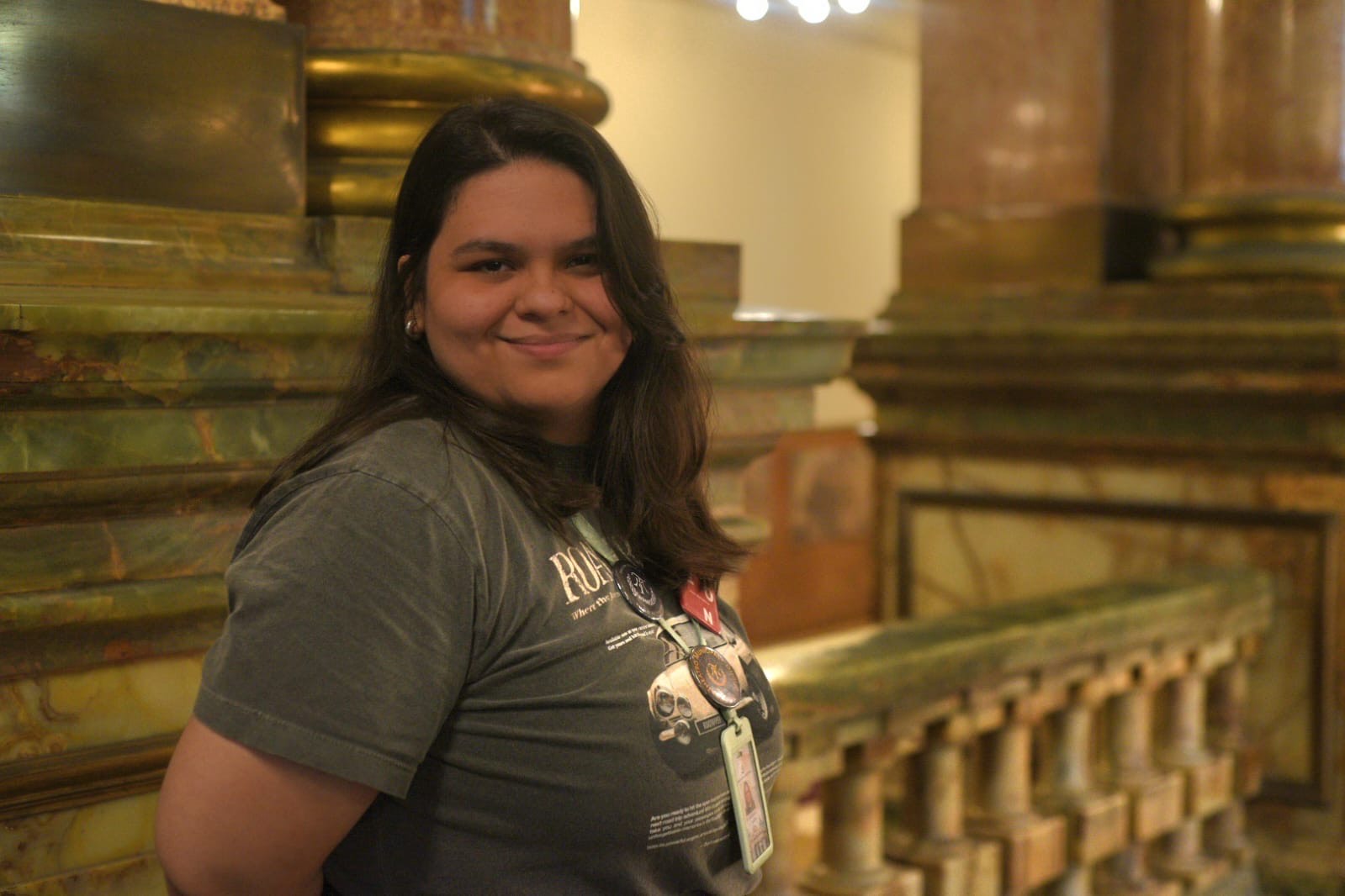 O grupo foi recebido pela historiadora Ângela Stelitano, que conduziu o percurso por uma das mais icônicas casas de espetáculo do país — que remete à Ópera Garnier, de Paris — e brindou os presentes com várias curiosidades sobre os quadros, os lustres e os diversos bustos distribuídos pelo local.