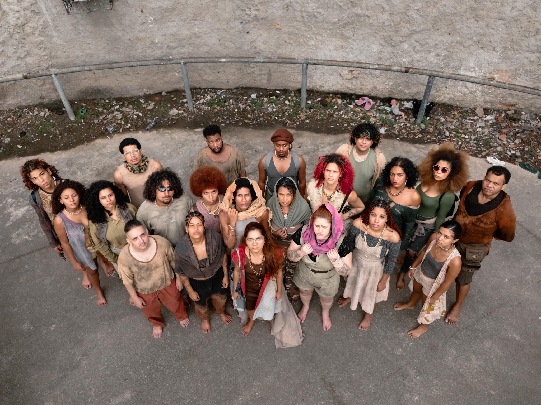 A encenação se materializa numa experiência imersiva que dissolve o palco e permeia o espaço, numa associação direta com a geografia da Maré. O cenário, que incorporou sugestões de ideias dos intérpretes, funde passado, presente e futuro para expor o ciclo ininterrupto da repressão militar que utiliza os mesmos mecanismos de tortura e genocídio (64, 2014, 2025, este útimo tão brutal quanto o s anteriores mas com a exposição da força do estado numa ação politizada e que afeta a Comunidades, os civis de maneira irreparável) para impor uma “ordem nacional” inacreditavelmente celebrada por adeptos que se tornam algozes. O espetáculo é dinâmico e desafiador, abrindo espaço para que as vozes da Favela da Maré e tantas outras silenciadas pelo sistema racista falem. A força da peça reside na propriedade da vivência de seus protagonistas: moradores e comunicadores, que transformam o trauma de censura e massacre em um grito urgente no palco. É um trabalho que provoca o público a confrontar a permanência da violência do poder, tendo a luta e a resistência como seu motor central. Renata Tavares.