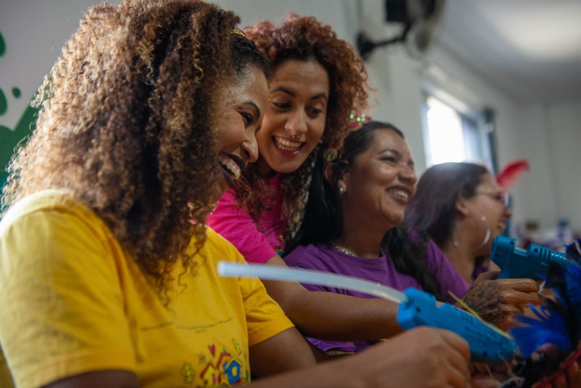 “Nosso objetivo é promover a inclusão produtiva por meio da inserção de alunos no mercado de trabalho, fortalecendo, especialmente, o mercado criativo do carnaval do Rio de Janeiro”, destaca Renata Luiza Reluz, professora de Customização, Adereços e Fantasias da ONG Favela Mundo.