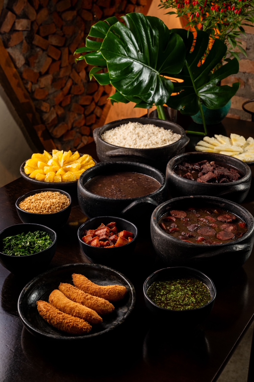A tradicional feijoada da casa leva feijão preto carregado com carne seca, lombo, costela salgada, paio, linguiça fina e calabresa. Para acompanhar, farofa na manteiga, arroz branco, banana à milanesa, couve manteiga, laranja, pancetta crocante, costela de porco e torresmo. As batidas de limão ou de maracujá da casa também estão inclusas no buffet e esse ano uma novidade: torta de limão com suspiro também faz parte da experiência .  O serviço será buffet e o valor é de R$154 (por pessoa).