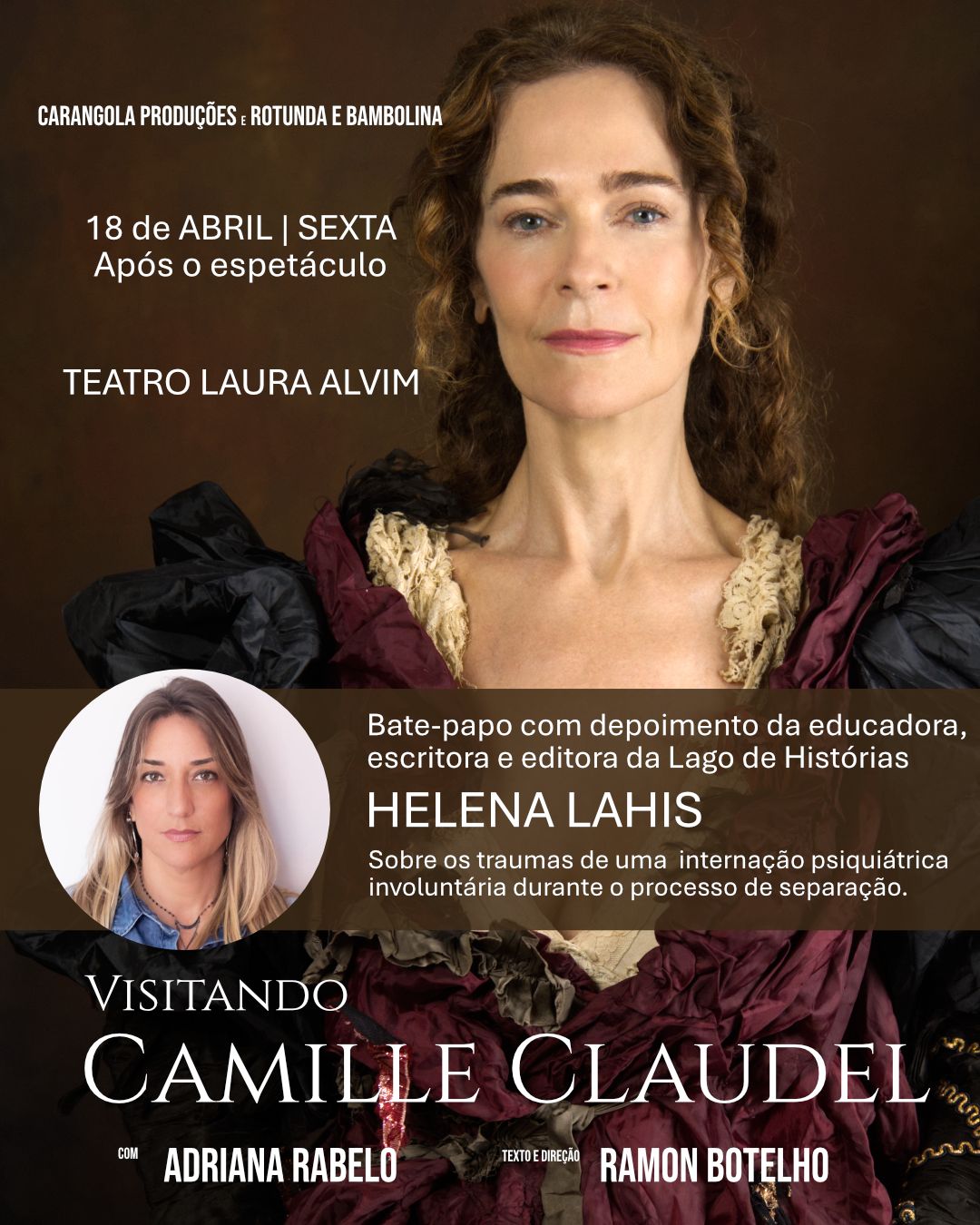 “Visitando Camille Claudel” entra na penúltima semana e hoje, após a peça tem bate papo com Helena Lahis, educadora, escritora e editora.
