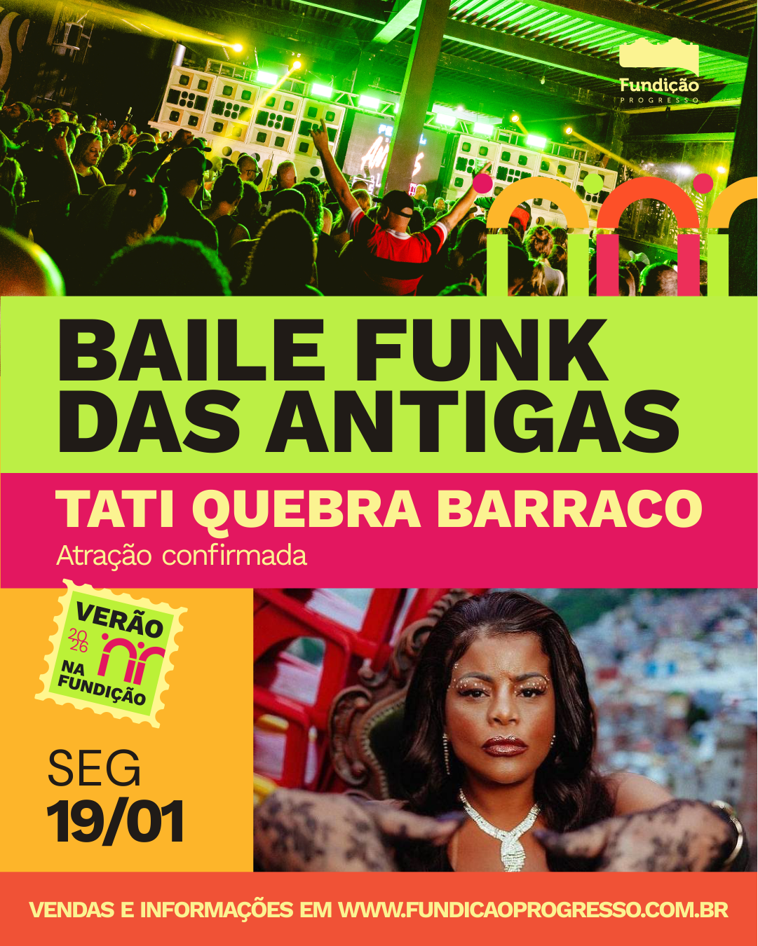Como parte de sua programação de Verão, a Fundição Progresso recebe na segunda-feira, 19 de janeiro, véspera de feriado, uma noite dedicada ao funk carioca e às gerações que formaram a cena do gênero no Rio. O Festival Baile das Antigas na Lapa ocupará a casa com três ambientes simultâneos, reunindo nomes marcantes em pistas dedicadas às décadas de 1980, 1990, 2000 e 2010.