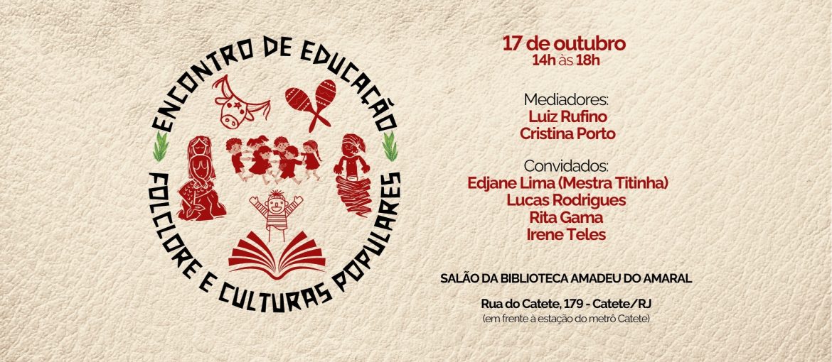 No dia 17 de outubro, das 14h às 18h, o Centro Nacional de Folclore e Cultura Popular (CNFCP), unidade especial do Instituto do Patrimônio Histórico e Artístico Nacional (Iphan), realizará o Encontro de Educação, Folclore e Culturas Populares, no salão da Biblioteca Amadeu Amaral, no Rio de Janeiro (RJ). O evento será composto por apresentações e debates sobre o tema, ampliando entendimentos e facilitando as compreensões acerca do campo de estudo. As inscrições são gratuitas e podem ser realizadas por meio de formulário digital. O encontro é voltado para professores que estão em sala de aula, educadoras e educadores em instituições de cultura, universitários e profissionais de áreas similares.