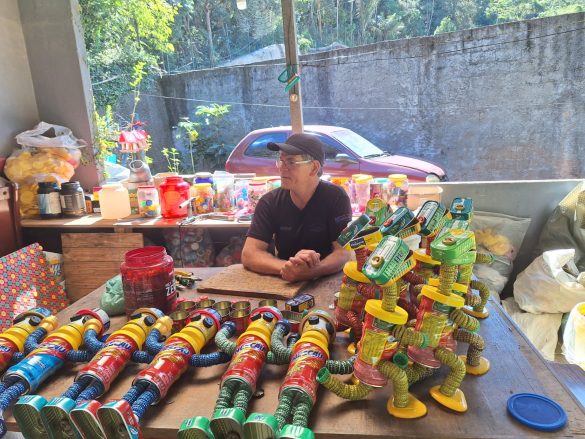O Projeto “Interior na Cena” será aberto dia 9 de março, sábado, às 16 horas, na Praça Olímpica, com a Oficina Reciclável Robozitos. A entrada é franca, com retirada de senha uma hora antes, e 40 vagas disponíveis. O petropolitano Oseias Simone desenvolveu, ainda jovem, um divertido e criativo hobby: juntava tampinhas e latinhas e montava robôs, para brincar com seus amigos. Os anos se passaram, o hobby ficou esquecido, mas, surgiu uma necessidade de presentear seu filho (Emanuel), pois Oseias estava desempregado. A partir daí, ele montou um ateliê de brinquedos sustentáveis, e batizou-o de Robozitos Eco. Oseias é um pioneiro na arte de reciclagem, aproveitando diversos materiais, e dando-lhes forma, criando animais como dinossauros, elefantes, cobras e sapos. Seu trabalho cumpre bem a tarefa de aproximar as gerações, e nos dá um alerta para o excesso de consumo e sobre o futuro do homem no planeta.