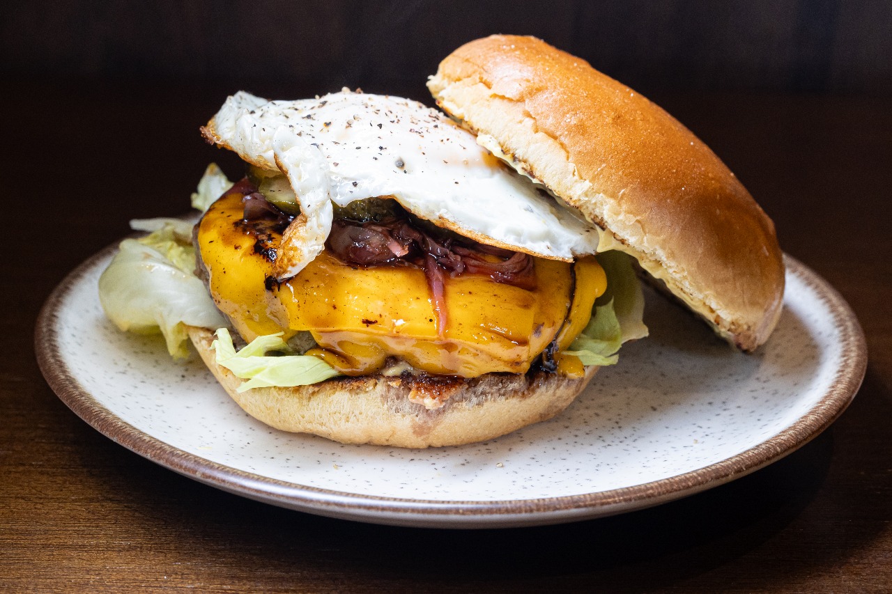 Sanduíche de Camarão (R$ 59,90) — camarões salteados com peperoni, cream cheese e cebolinha, toque de limão siciliano, salsa e hortelã, finalizado com ovo estrelado.