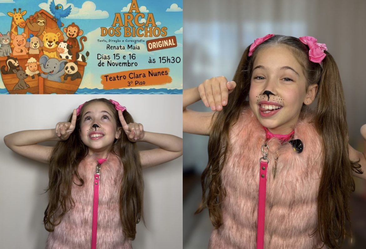 A atriz mirim Malu Miranda retorna ao palco como Safira, a cachorrinha, nas apresentações de “A Arca dos Bichos”, que acontecem nos dias 15 e 16 de novembro, às 15h30, no Teatro Clara Nunes, no Rio de Janeiro. Os ingressos estão disponíveis no Sympla.
