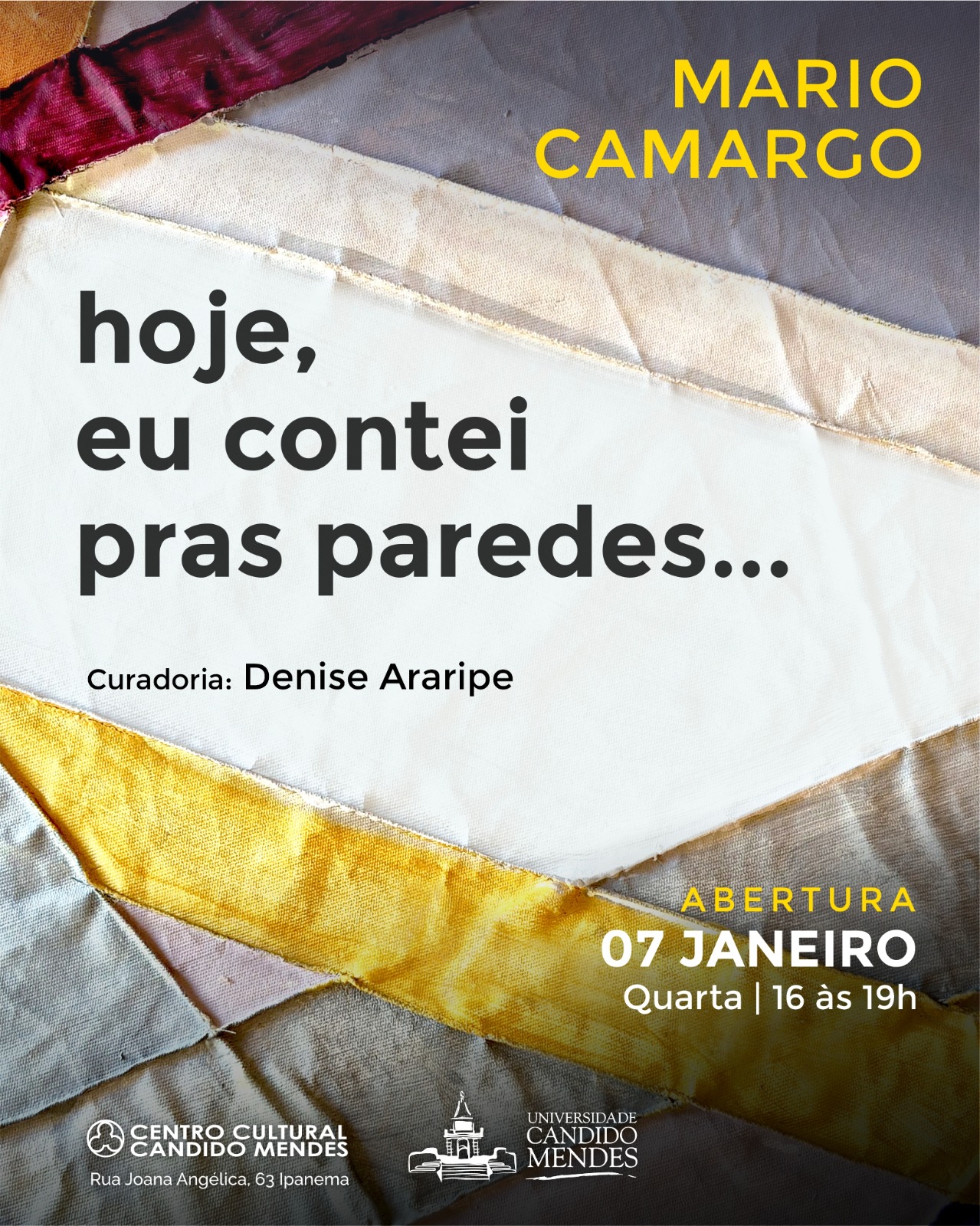 O artista plástico Mário Camargo apresenta a exposição ‘hoje, eu contei pras paredes’, com curadoria de Denise Araripe, no Centro Cultural Cândido Mendes, em Ipanema, ressignificando tecidos que já tocaram corpos, de superfícies que sustentaram pesos, de materiais que guardam o uso, o tempo e o abandono. Sofás antigos, colchas gastas, panos esquecidos, tapetes sem destino: restos que carregam memória. Os trabalhos são presos nas paredes, por agulhas e funcionam como verdadeiras peles.