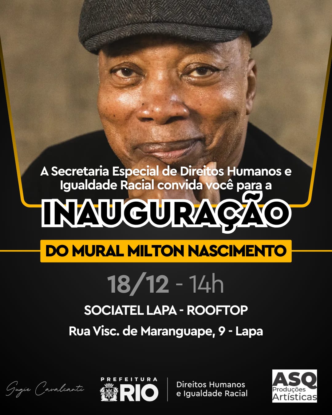 Além de bares e festas, quem passar pela Lapa a partir de dezembro encontrará o rosto de um dos principais ícones da música popular brasileira. O reduto boêmio e cultural do Rio de Janeiro ganhará um novo mural em homenagem a Milton Nascimento. O desenho do cantor e compositor está sendo pintado na lateral do prédio da Associação Cristã de Moços (ACM), na Rua da Lapa, 86. A obra, de 300m², ajuda a colorir a paisagem urbana e ocupa uma vista privilegiada para os Arcos da Lapa, um dos pontos turísticos mais visitados do país. A inauguração do mural será nesta quinta-feira (18/12), às 14h, no rooftop do Sociatel Lapa, na Rua Visconde de Maranguape, 9, de onde o público terá uma vista panorâmica da intervenção, que integra uma iniciativa da Secretaria Especial de Direitos Humanos e Igualdade Racial (SEDHIR) do Rio.