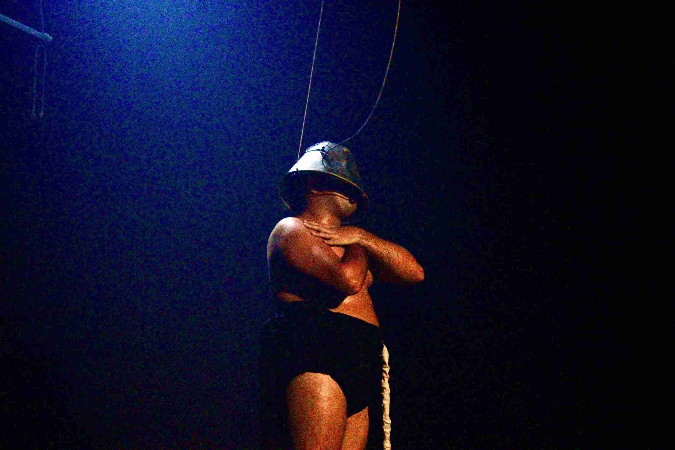 O PÔA é um espetáculo teatral em que um corpo não-ortodoxo é atravessado por forças que o convocam, o contêm e o expõem. Preso a um lugar que não se fixa – um lugar nenhum – esse corpo é submetido a um regime de estímulos, regras e promessas que operam sem explicação. Toda tentativa aciona o desejo, todo desejo produz frustração. A única interjeição possível, “pôa”, surge como um som primordial, oscilando entre excitação e lamento. Quando escapar deixa de ser uma opção, resta sustentar a própria existência. Não há redenção. Há consciência. Nada se resolve. A vida permanece.