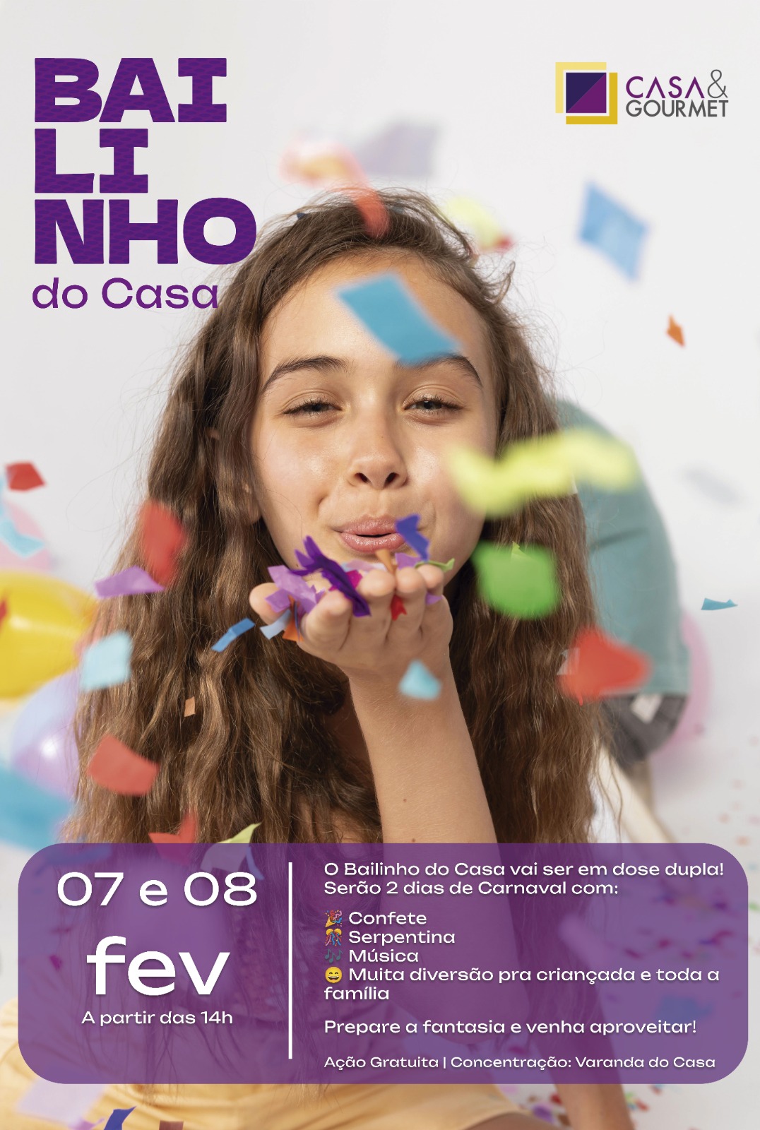 O shopping Casa & Gourmet, em Botafogo, Zona Sul do Rio, promoverá, no próximo fim de semana (7 e 8 de fevereiro) bailinhos de carnaval para as crianças. Os pequenos foliões poderão curtir bandinha, personagens circenses, brincadeiras, animação e brindes. Com entrada gratuita, o evento acontecerá das 14h às 17h, na praça de eventos do shopping.