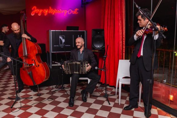 Os integrantes Martín Lima, no bandoneon (Argentina); Facundo Estefanell, no baixo (Uruguai) e Marcio Sanchez no violino (Brasil), criam toda a atmosfera dos bailes portenhos e esquentam as noites cariocas, encantando desde o público mais leigo até casais das antigas milongas.