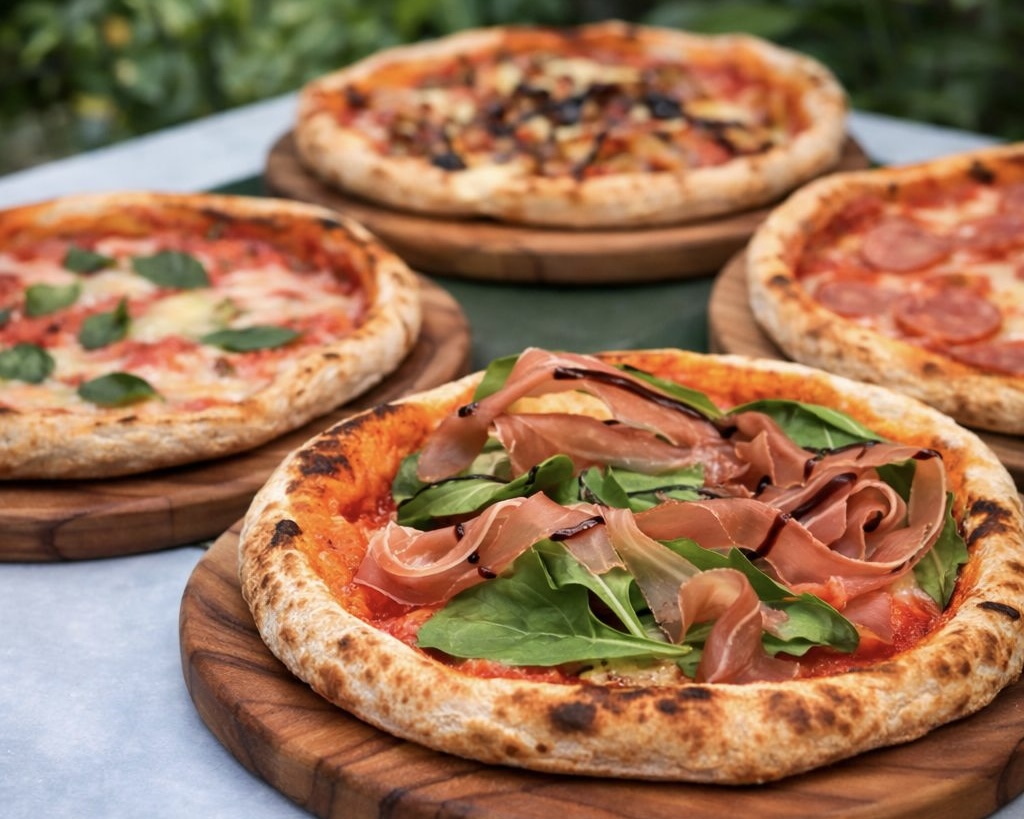 A base de todas as pizzas da marca é a massa de longa fermentação, feita com farinha italiana e tempo como ingrediente essencial. O resultado é uma textura aerada, bordas delicadamente crocantes e miolo macio, que valoriza cada cobertura sem sobrepor sabores. Os tomates pelati italianos, os queijos selecionados e os embutidos curados reforçam a autenticidade de uma pizza fiel às suas raízes.