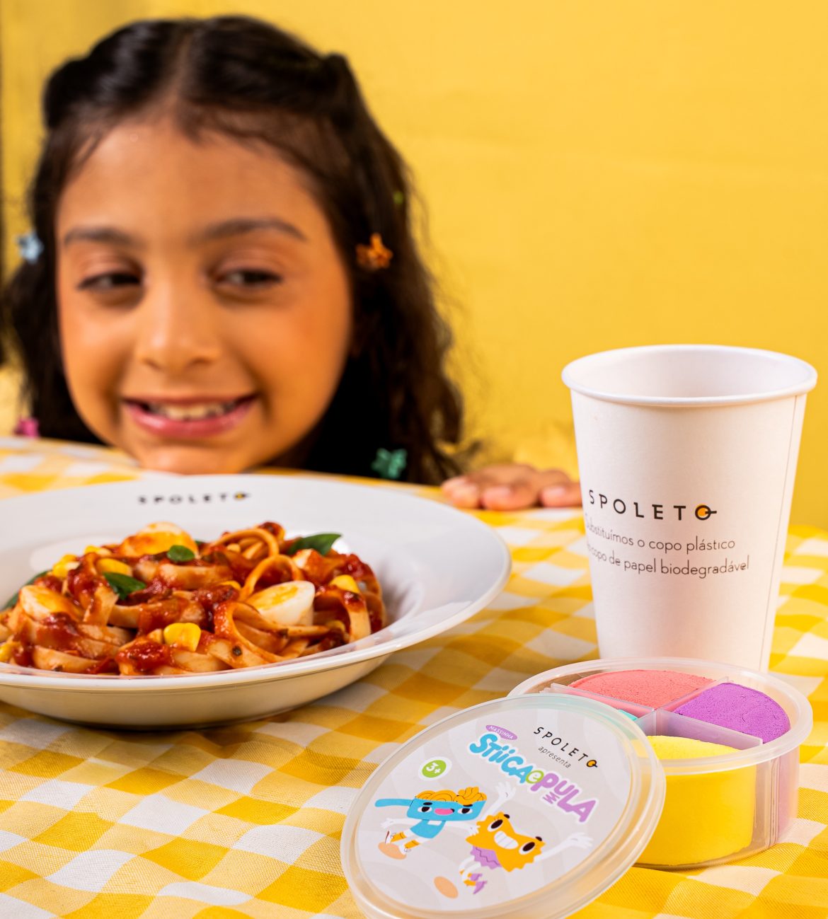 Para comemorar o Dia das Crianças, o Spoleto — marca líder de mercado, maior rede de franquias de comida italiana do Brasil e pertencente ao Grupo Trigo — terá uma promoção especial. Na compra de um combo infantil, o cliente ganha de brinde uma massinha pula e estica.