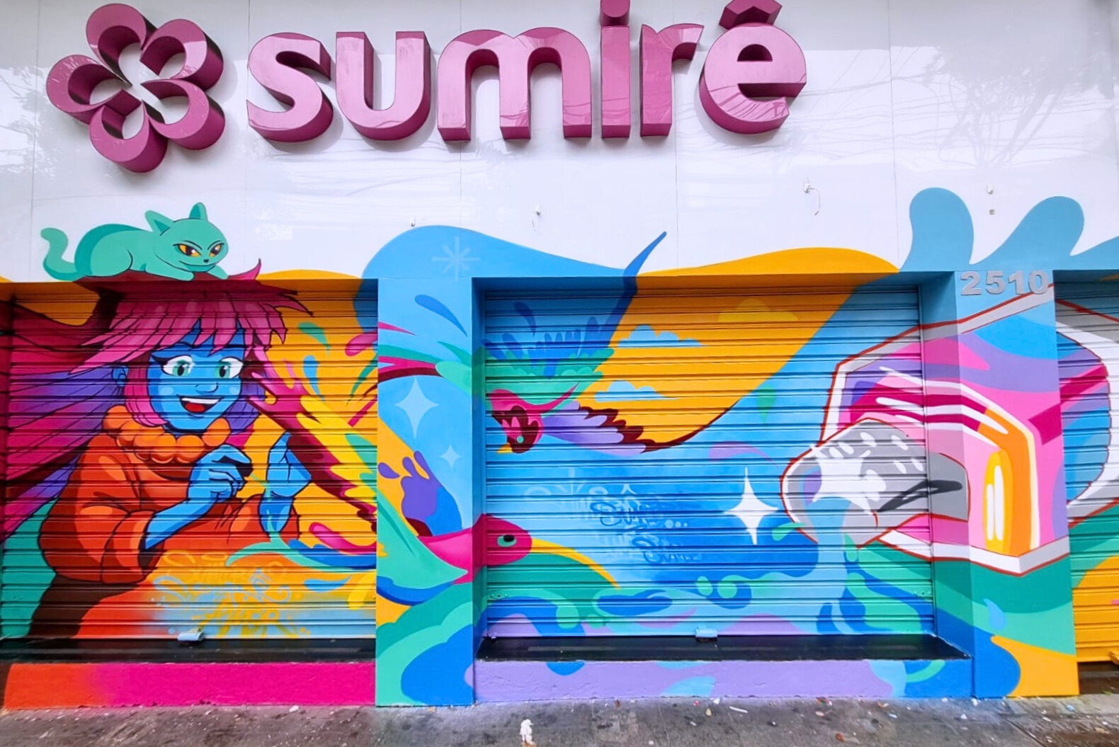 Localizada na Teodoro Sampaio desde 2010 e há menos de cinco anos no atual endereço, a loja enfrentava constantes pichações em sua fachada. Para transformar esse desafio em uma oportunidade de conexão com a comunidade, a Sumirê convidou o artista para reinterpretar o espaço com um mural que traduz o universo da beleza de forma criativa, colorida e inspiradora.