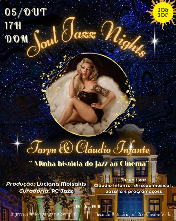 No dia 5 de outubro, domingo, às 17h, o palco do Jo&Joe, no Cosme Velho, recebe, no encerramento da temporada 2025 do projeto Soul Jazz Nights, a apresentação especial de Taryn e Cláudio Infante com o espetáculo “Minha História do Jazz ao Cinema”. O show marca o fechamento de um ciclo memorável e prepara terreno para uma nova etapa do projeto após o Carnaval.