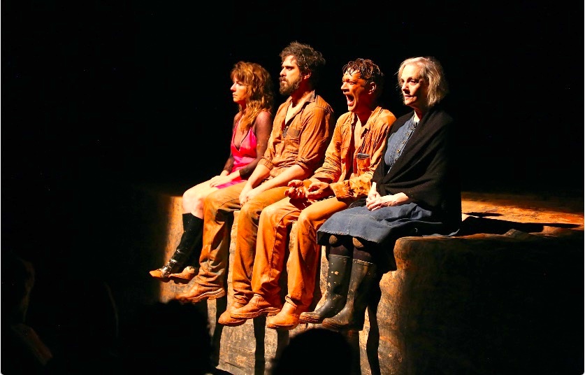 O diretor Rodrigo Portella revestiu o palco com uma grande e rústica lona, sobre a qual há lama e água, numa alusão ao solo rural, e também numa provocação à estabilidade dos atores, que se (des)equilibram ao longo do espetáculo, em atenção e conexão máxima com os seus próprios corpos e dos colegas em cena. A instabilidade permanente reflete as tensões entre as personagens.