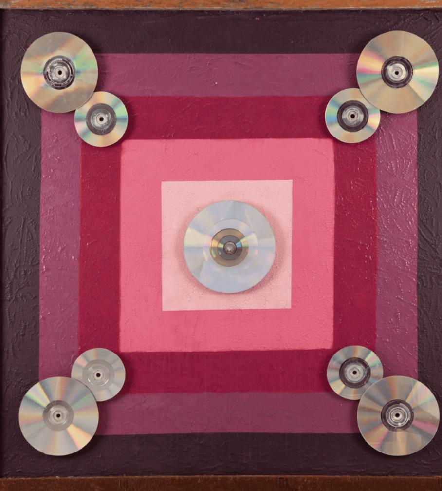 Ezo reescreve o que foi descartado. CDs, discos de vinil, disc lasers e toldos, reaparecem como superfícies de cor e textura, revelando camadas de memória urbana. Sua prática do reuso transforma precariedade em potência, crítica em beleza, gesto político em poética visual. O que a cidade abandona, o artista reconfigura como narrativa e corpo, devolvendo à matéria um sentido de permanência.