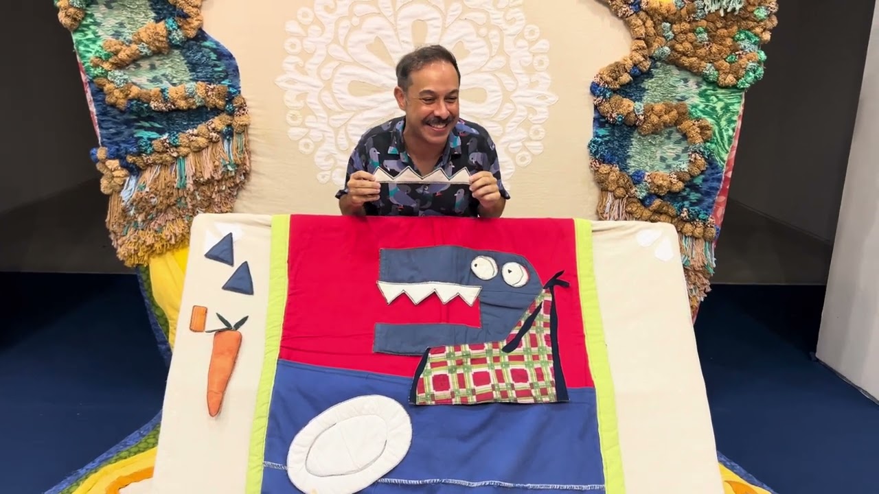 “Há 20 anos, nós fizemos a primeira exposição interativa literária e têxtil no Brasil, no Conjunto Cultural da CAIXA, como era chamado na época, de Brasília e Rio de Janeiro. De lá pra cá, foram 32 exposições interativas nas unidades da CAIXA Cultural de todo país”, diz Warley Goulart, integrante e fundador do grupo Os Tapetes Contadores de Histórias.
