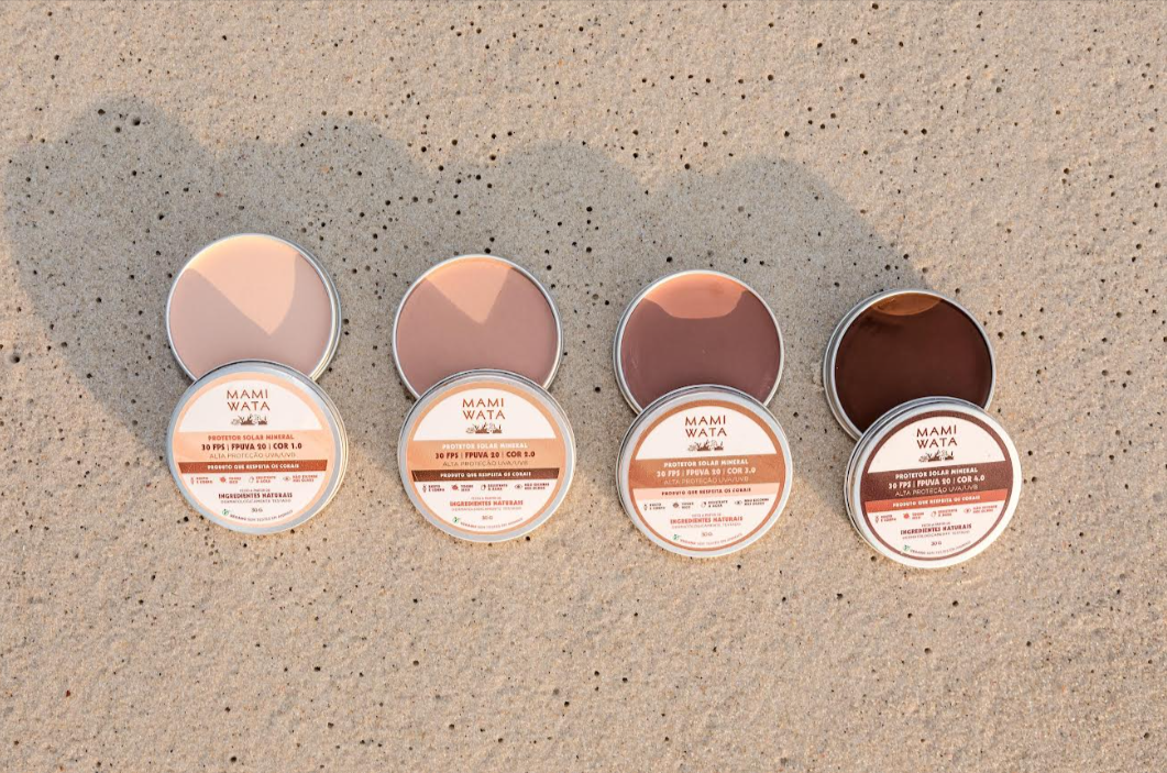 Já a Mami Wata, criada pela bióloga Olivia Rabacov e pela química Érika Valoni, nasce com o propósito de desenvolver produtos que cuidem da saúde da pele ao mesmo tempo em que minimizam os impactos ambientais, especialmente nos oceanos, destacando-se por sua formulação limpa, segura e alinhada à preservação dos recifes de corais e da vida marinha.