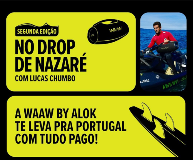 A WAAW by Alok dá início à segunda edição da campanha “No Drop de Nazaré”, unindo música, adrenalina e experiências inesquecíveis com o surfista Lucas Chumbo. Depois do sucesso em 2024, a marca segue sendo pioneira e inovadora no segmento e retorna com a ação ainda mais robusta e com uma nova proposta: além do tradicional sorteio para consumidores, desta vez, a campanha também convida criadores de conteúdo a embarcarem nessa onda gigante, literalmente.